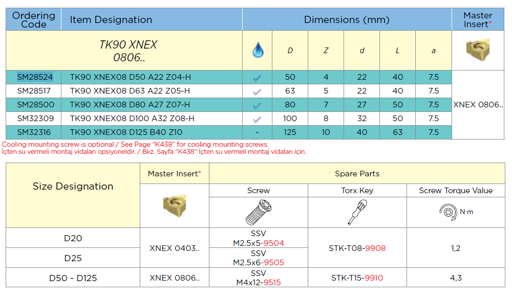 Głowica frezerska 90° TK90 XNEX08 D50 A22 Z04-H