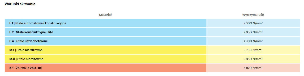 | K.1 | Żeliwo (≤240 HB) | ≤ 820 N/mm2 |